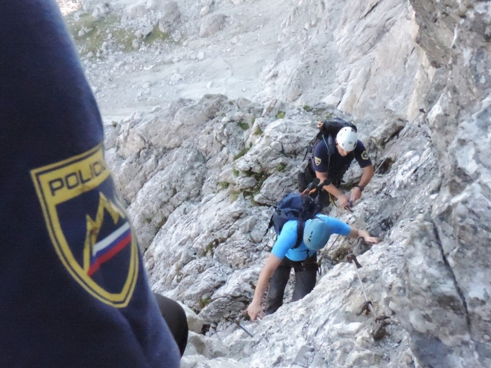 Ob 8. uri se, kakor je bilo dogovorjeno, srečam z dvema policistoma, pripadnikoma Gorske enote Policije. Za vzpon na Malo Mojstrovko smo si izbrali Hanzovo pot na Malo Mojstrovko. Gre za zelo zahtevno planinsko pot, ki terja zanesljiv korak in izkušeno nogo. Kmalu krenemo po markirani poti proti Slemenu. Na poti srečamo nekaj ljudi. Nek par ni bil prepričan, če je to prava pot proti Hanzovi poti (potrdimo jima pravilno izbiro poti), na sedelcu pa opazimo še angleški par, s pogojno primerno obutvijo. Angleža vprašamo kam sta namenjena in odgovorita, da na Slemenovo špico, nato le še izmenjamo še nekaj besed, se poslovimo in odrinemo vsak svojemu cilju na proti. Če bi se angleža odpravljala na Mojstrovko bi ju verjetno opozorili na nejbolj primerno obutev - za Slemenovo špico pa so jima njuni čevlji lahko nudili dobro stopinjo.