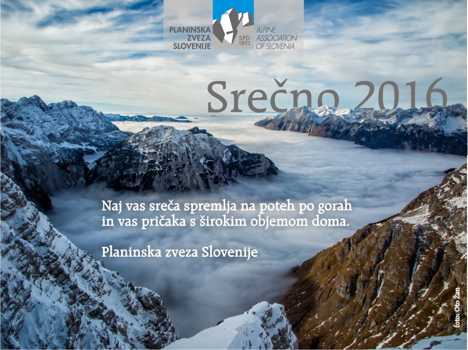 Naj vas sreča spremlja na poteh po gorah in vas pričaka s širokim objemom doma. Srečno 2016!