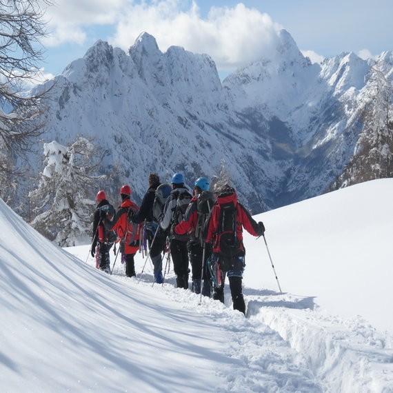 Pot do lovske koče smo, po prej pripravljeni turi na zemljevidu, zaradi obilice novega snega, družno pregazili. Od tu naprej je prva skupina zaradi povečane nevarnosti snežnih plazov, desno od grape, po grebenu na vrh Vršiča (1738 m), naredila 100 metrsko vrvno ograjo. Ostale štiri skupine pa so med tem ponovile zimsko tehniko - varovanje za vzpon, izdelava sidrišč v snegu, prerez snežne odeje, ... Z varovanjem ob vrvni ograji smo nato vsi ponovili še tehniko vzpenjanja in osvojili vrh Vršiča.