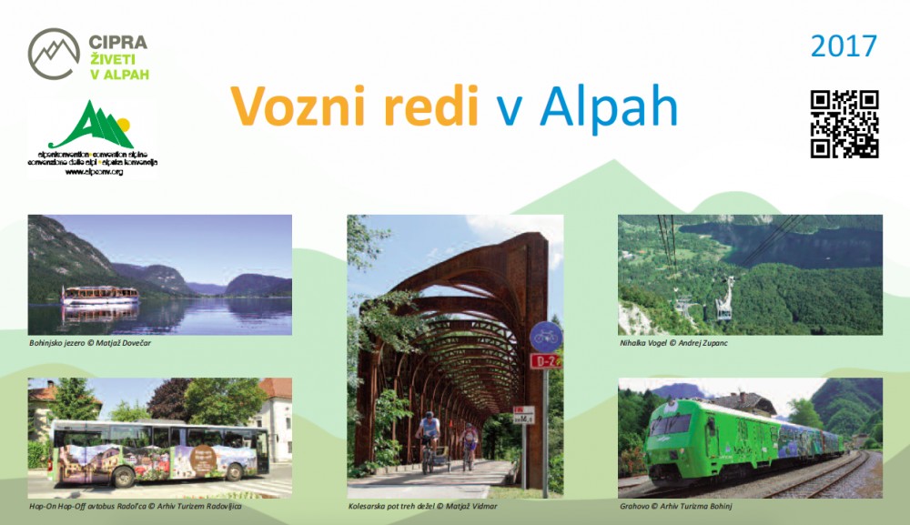 sreda, 31. maj 2017 ob 09:00, ogledov: 14445 Izšli so Vozni redi v Alpah 2017Objavil(a): Manca Ogrin | | V okviru Tedna Alpske konvencije je danes izšla že deveta knjižica Vozni redi v Alpah, ki vsebuje 71 prog avtobusov, vlakov, žičnic in ladij po slovenskih Alpah in tudi preko mej. Bralcem smo ponudili tudi nabor kolesarskih izposojevalnic in taksi prevozov. Knjižica je tudi letos doživela nadgradnjo – dodali smo namreč 3 žičnice in 4 proge doma in v tujini. Naklada znaša 5.000 izvodov, z večjim deležem izvodov v angleškem jeziku. |