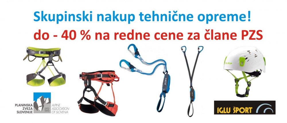 Prav zato smo v želji po čim širši dostopnosti določene tehnične opreme s partnerskim podjetjem Iglu šport d.o.o. pripravili ugodno ponudbo gorniške čelade ter dveh različic plezalnega pasu in samovarovalnega kompleta. Skupaj nam je uspelo znižati ceno tudi do 40 %!