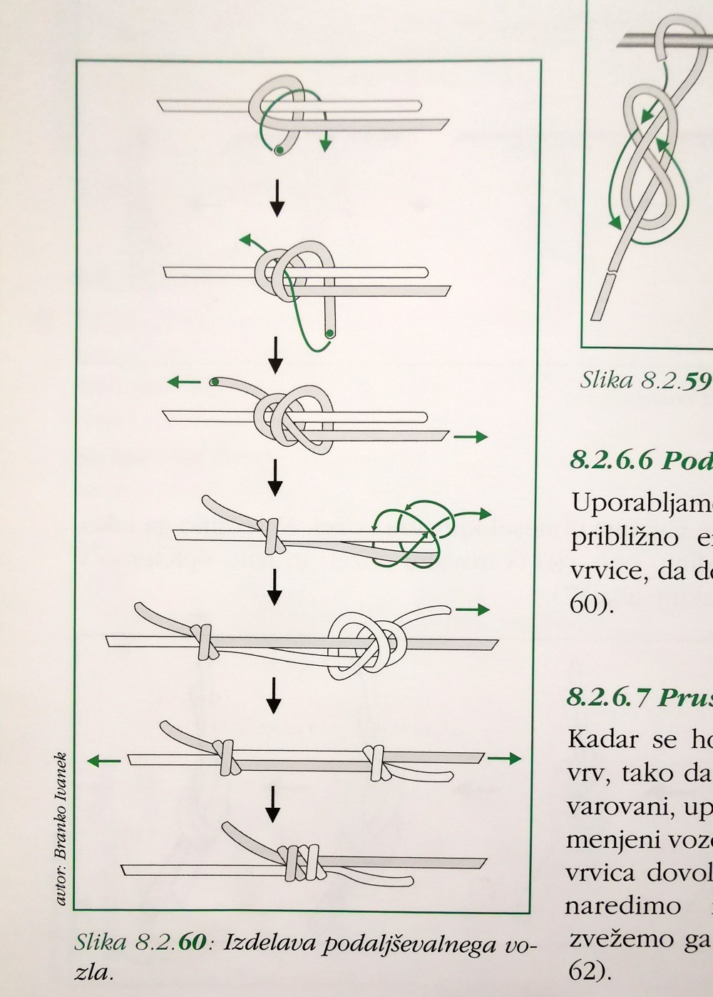Kako izdelati podaljševalni vozel in preostale planinske vozle, najdete tudi v učbeniku Planinska šola (Planinska založba PZS, 2016) in v spletni učilnici Mala šola planinstva.