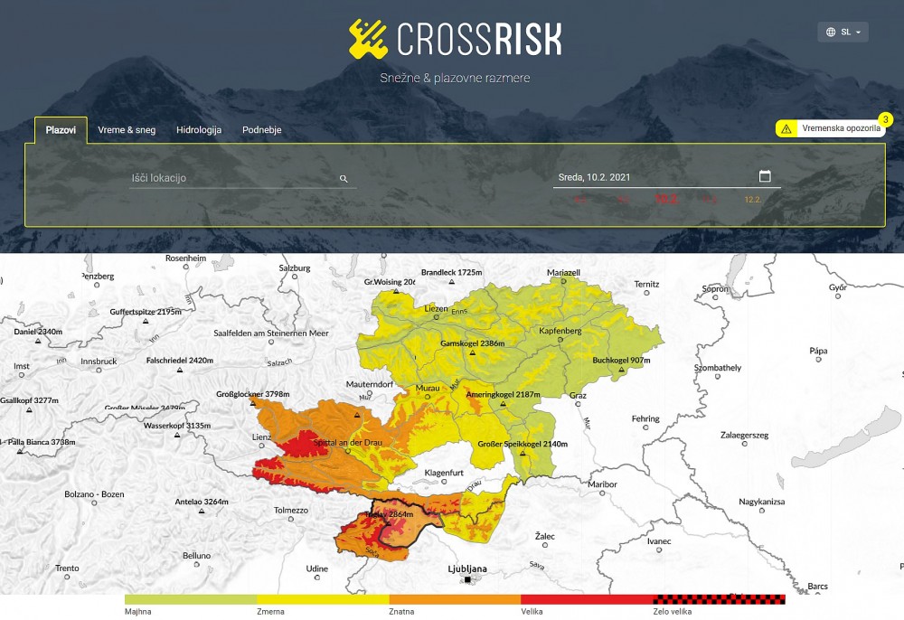 Projekt CROSSRISK, ki se financira iz evropskega programa Interreg Slovenija-Avstrija, poteka od junija 2018 do avgusta 2021. Projekt vodi ZAMG, projektni partnerji pa so še avstrijski deželi Štajerska in Koroška, FH Joanneum, Znanstvenoraziskovalni center Slovenske akademije znanosti in umetnosti (ZRC SAZU), Univerza v Mariboru (UM) in Agencija Republike Slovenije za okolje (ARSO). Sodelovanje operativnih služb za opozarjanje iz Slovenije in Avstrije zagotavlja, da bodo projektni rezultati in produkti dolgoročno prosto dostopni in bodo redno vzdrževani tudi po koncu projekta. Poleg nove spletne strani, prenovljenega plazovnega biltena in orodja za načrtovanje aktivnosti na prostem so slovenski projektni partnerji pripravili, v sodelovanju z avstrijskimi, še dve publikaciji in informativne videoposnetke na temo snega in snežnih plazov, ki so dostopni na spodnjih povezavah. Poenoten pristop k ocenjevanju razmer na avstrijsko-slovenskem čezmejnem območju prinaša dolgoročne koristne učinke za uporabnike ter kaže na celovito in poenoteno razumevanje tega prostora, predvsem pa prispeva k varnosti njegovih uporabnikov. Dodatni vremenski produkti in izboljšane informacije o snegu ter plazovih so le del projektnih aktivnosti; druge se osredotočajo na izboljšane hidrološke napovedi in poplavna opozorila v porečju reke Mure ter na podporo za dolgoročno načrtovanje ob upoštevanju različnih podnebnih scenarijev in tveganj zaradi podnebnih sprememb.