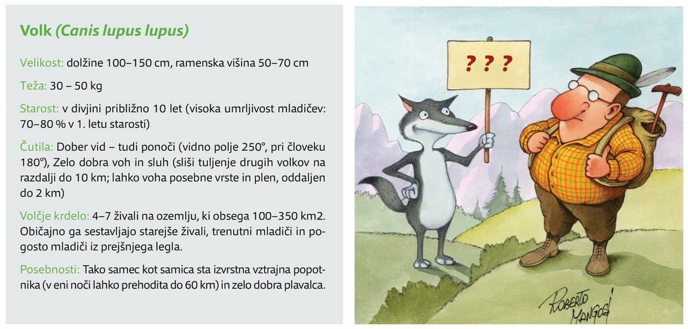Komisija za varstvo narave in urejanje alpskega prostora CAA je pripravila zgibanko Srečanja z volkom. Zgibanka je na voljo v vseh jezikih članic - poleg slovenskega so na voljo tudi v nemškem, italijanskem, francoskem in angleškem jeziku. Alpska planinska združenja zagovarjajo spoštljivo sobivanje človeka in prostoživečih živali. Te se običajno umaknejo takoj, ko zaznajo človeka. Enako velja za volka in rjavega medveda. Že nekaj let sta obe vrsti znova zastopani v nekaterih predelih Alp.