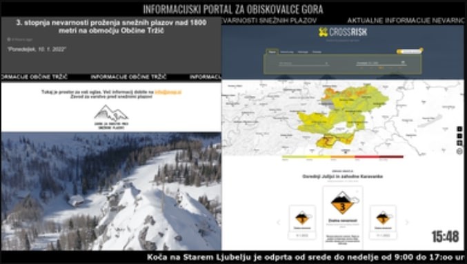 Vsebine na televizorju bodo dodajali iz domače pisarne in se bodo dnevno spreminjale. Predvsem se bo spreminjala stopnja nevarnosti snežnih plazov, ki je prikazana grafično za območje Občine Tržič in pa tudi za celotno Slovenijo in Avstrijo. Na samem izhodišču se bodo pohodniki lahko seznanili s trenutnimi razmerami in nevarnostmi. Prikazane so tudi slike vremenskih kamer iz območja Zelenice. Poleg teh informacij bodo prikazane tudi druga obvestila Občine Tržič ter videovsebine Visit Tržič, Crossrisk in preventivni videovložki Policije in drugih služb.