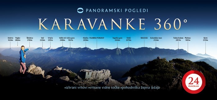 četrtek, 3. oktober 2013 ob 00:00, ogledov: 10318 Panoramski pogledi Karavanke 360° tudi v Planinski trgovini PZSObjavil(a): Zdenka Mihelič | | V Planinski trgovini PZS je na voljo odlična in inovativna knjižica «Panoramski pogledi Karavanke 360º«. Gre že za drugo tako knjižico, ki je po panoramskih pogledih z vrhov Julijcev zasnovana kot priročna zloženka žepnega formata z barvnimi fotografijami panoramskih pogledov tokrat s 24 vrhov Karavank. |